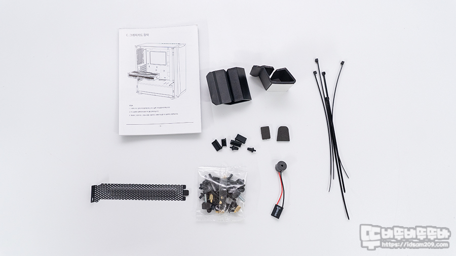특히 나사류 자재에 긴 나사는 케이스 샤시 내부의 바닥면에 120mm 쿨링팬을 장착할 때 사용하는 용도이니 참고하시기 바랍니다.