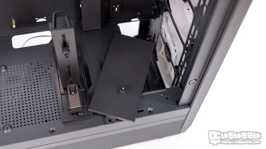 ▶ 샤시 내부에 SSD 장착 시 케이블을 가려주는 프레임을 떼어내야 하는 점.
