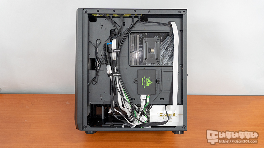 케이스 뒷면을 살펴보면 메인보드가 장착되는 샤시 뒤쪽에 I/O 포트가 위치하여 케이스 내부를 거치지 않는 편안한 케이블 정리가 가능하고요.