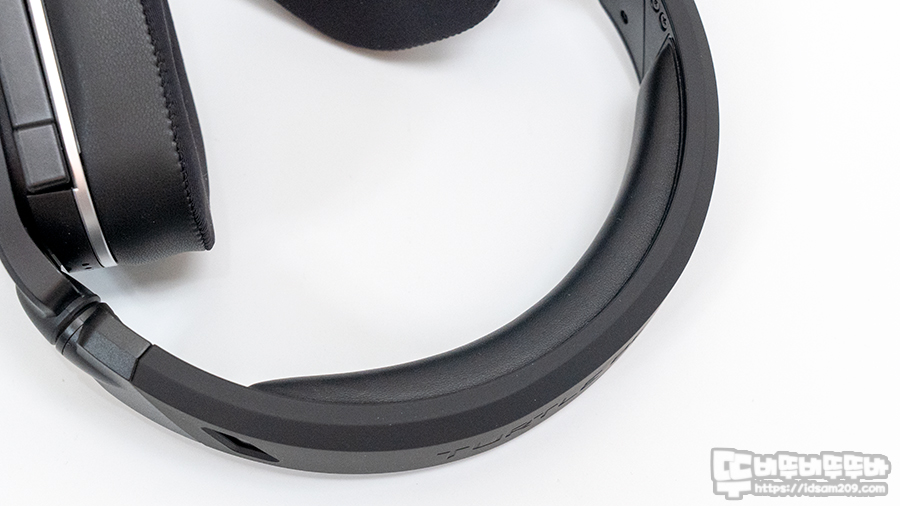 러버 코팅이 적용된 플라스틱 헤어밴드에는 겉면에는 Turtle Beach 로고 모습을 확인할 수 있으며 밴드 안쪽에는 정수리 부분의 눌림을 최소화해주는 쿠션을 확인할 수 있고요.