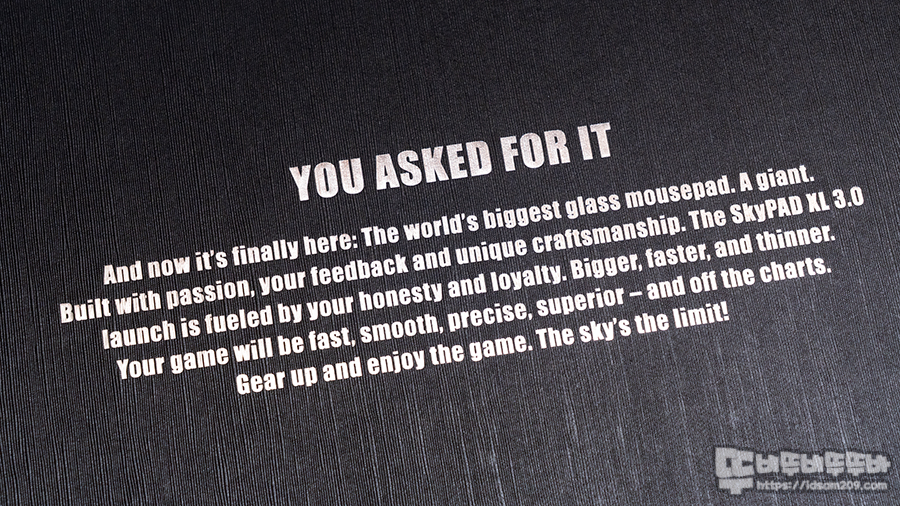 이번에 리뷰할 제품은 킥스타트 펀딩 이후 인기리에 판매되는 강화유리 패드인 SkyPAD Glass 3.0 XL 게이밍 마우스패드(블랙 클라우드)입니다.