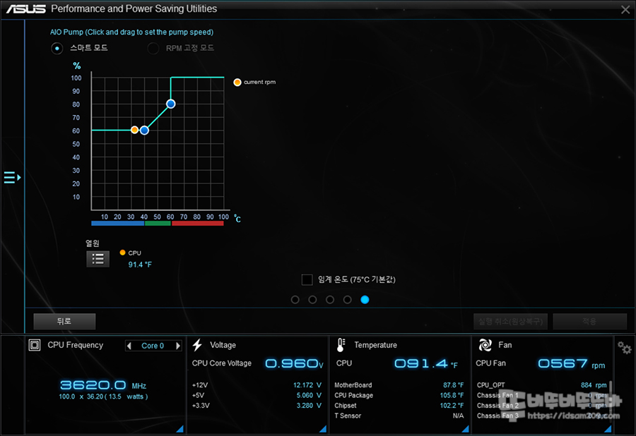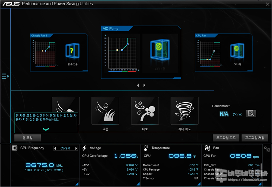 필자는 팬 허브를 AIO Pump 커넥터에 연결하여 ASUS Fan Xpert 4 프로그램을 이용하여 rpm 조절로 풍량을 제어할 수 있었는데 확실히 PWM 4핀과 팬 허브 조합은 정말 좋은 아이디어인 거 같네요.
