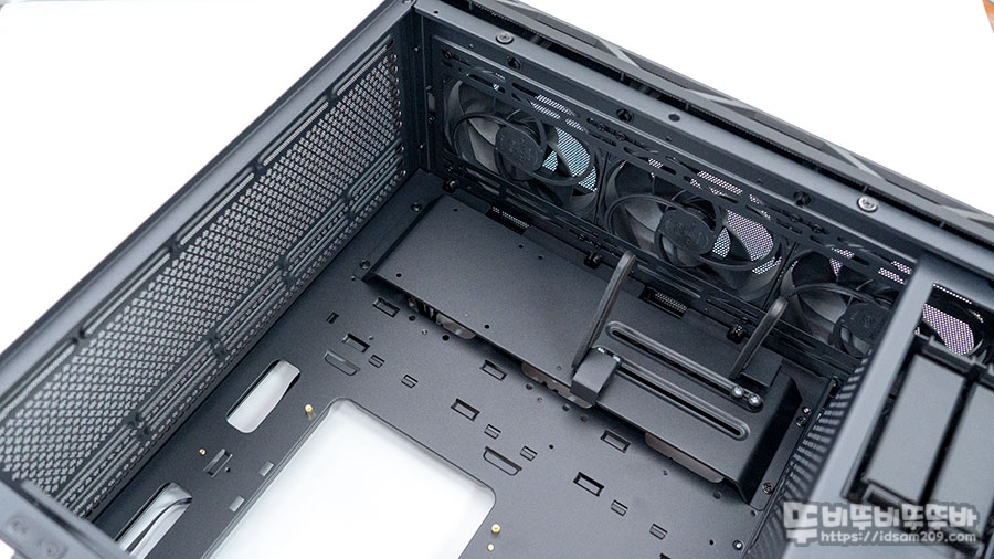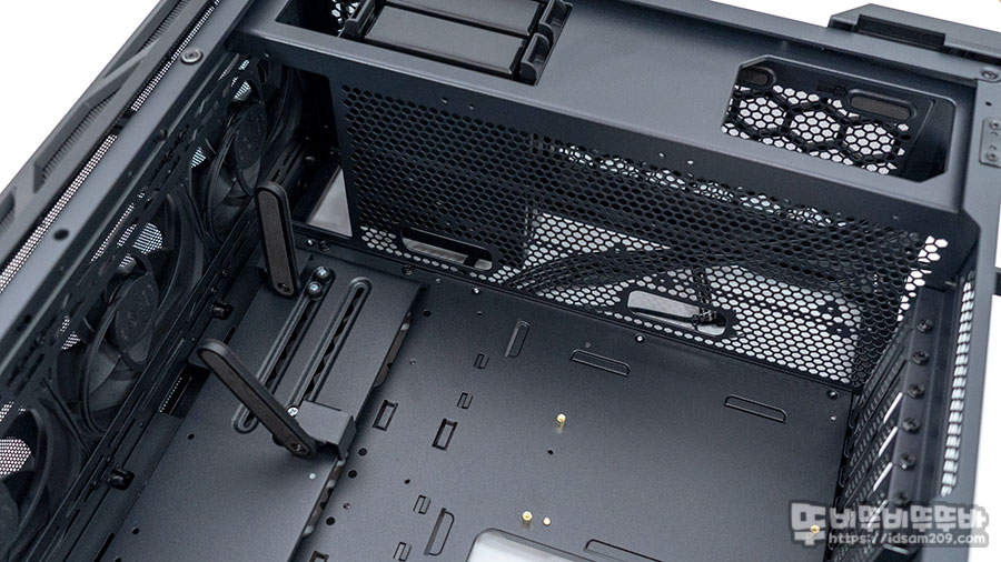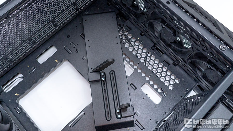 특히 샤시 내부의 추가된 패널은 SSD 장착 및 그래픽카드 지지대를 기본으로 장착하고 있지만 전면 쿨링 구성에 따라 제거가 필요할 수 있으니 시스템 빌드 시 참고하시기 바랍니다.