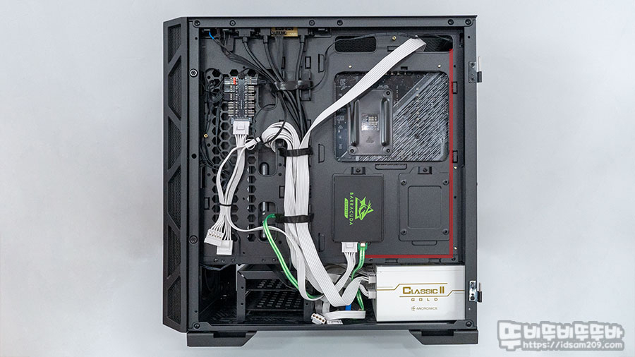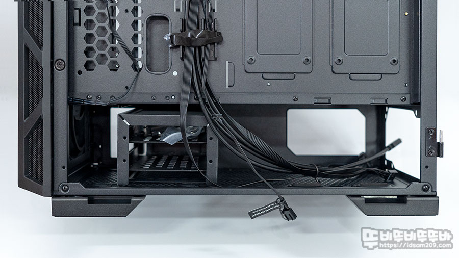 샤시 뒷면을 살펴보면 케이블 정리를 대충 해도 깔끔하게 보이게 하는 커버가 눈에 들어옵니다.