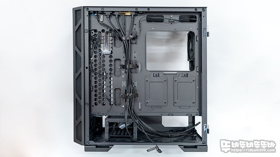 커버를 제거하면 여느 케이스 샤시 뒷면과 동일한 모습을 확인할 수 있는데