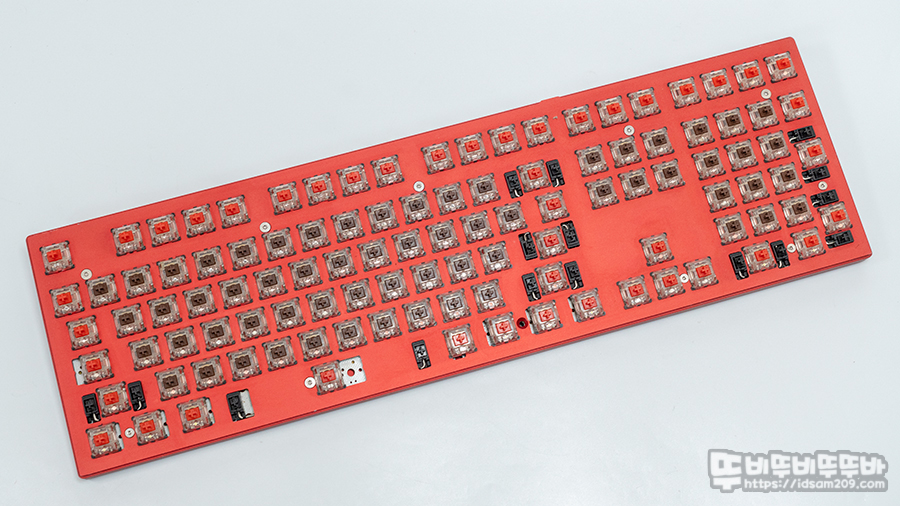 제작 당시 기본 스프링을 제거하고 필자가 선호하는 55g 정압 스프링을 장착 후 문자열과 모디열의 갈축과 적축을 혼용하여 만든 게 특징인데요.