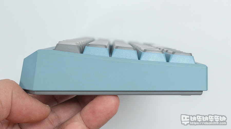 개인적으론 키캡의 모디 배열의 컬러가 약간 어두운 계열이기에 밝은 톤의 하우징과 잘 어울리는 느낌을 줍니다.
