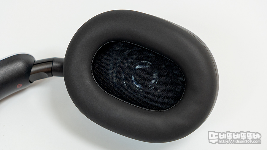 이어패드 안쪽에 스피커 플레이트 중앙에 살짝 돌출된 내부 소음을 감지하는 피드백 ANC 마이크를 확인할 수 있습니다.