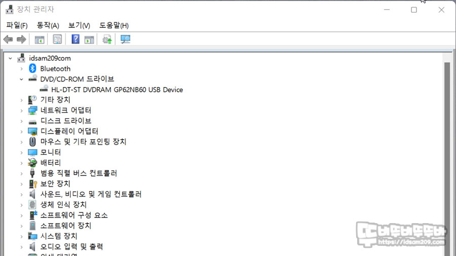 GP62NB60 외장ODD를 PC에 연결하면 DVD/CD-ROM 드라이브 항목에 인식되는 것을 확인할 수 있습니다.