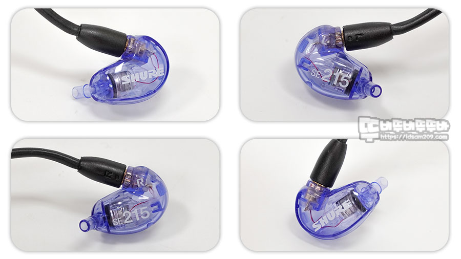 이어폰 하우징 안쪽에는 모델명 SE215 그리고 왼쪽과 오른쪽을 구분하는 R, L 표기를 확인할 수 있네요.