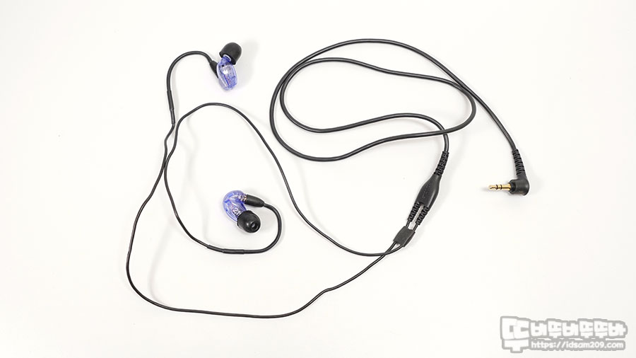 슈어(SHURE) SE215SPE 퍼플 (Purple) 게이밍 이어폰은 SE215 이어버드 본체와 116cm 케이블이 기본으로 연결된 상태로 포장되어 있고요.