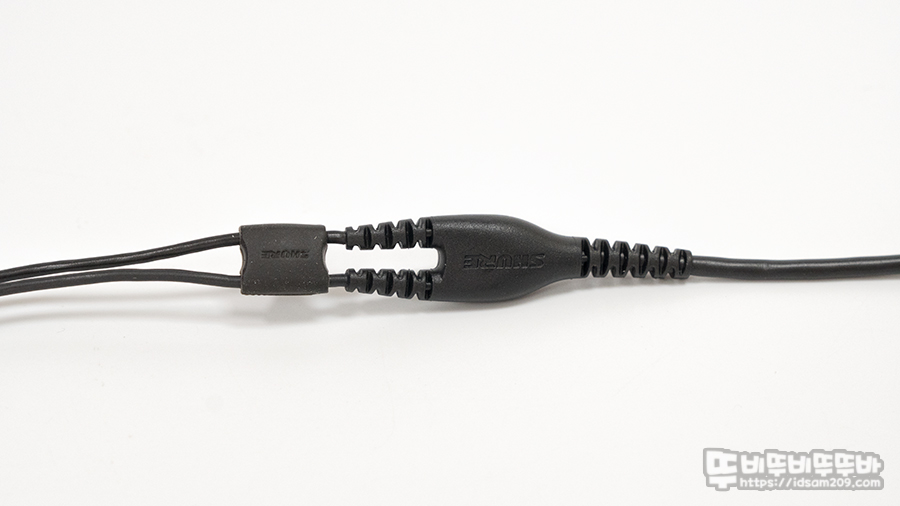 이어폰 중간의 몰딩 부분은 케이블 움직임을 유연하게 해주는 주름 방식의 몰딩이 적용되어 케이블 내부 단선을 최소화한 느낌을 주고요.