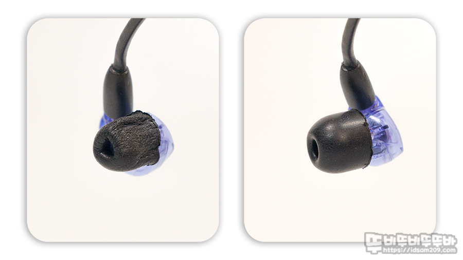 슈어 제품에는 기본적으로 폼 이어팁을 사용하는 걸 추천드리는데요.