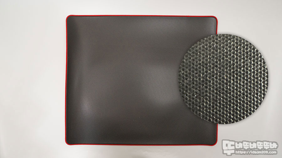 패드 바닥면은 새 제품이라 그런지 약간의 점성이 느껴지면서 미끄러짐을 확실하게 방지해주는데 혹 표면 처리가 되지 않은 목재 또는 먼지가 많은 책상에서 사용하는 경우 책상과 패드 바닥면을 물티슈로 닦아주면 미끄러짐 없이 사용이 가능하시니 참고하시기 바랍니다.