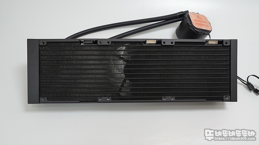 타사 제품의 경우 별도의 PWM 허브를 내장한 것을 본 적이 있지만 라디에이터 내부에 쿨링팬을 연결하는 디자인은 처음 보는 거 같네요.