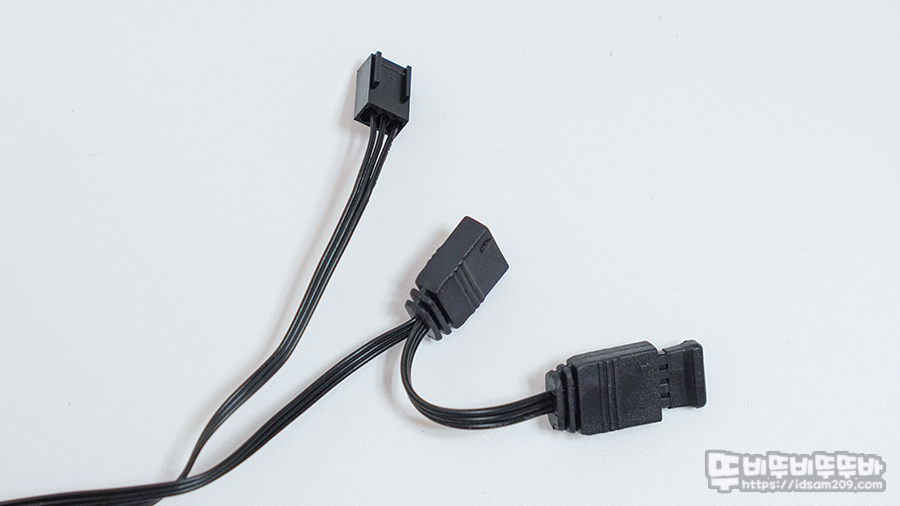 이렇게 연결된 이후 반대편의 검정색 커넥터에 케이블 하나만 연결하여 메인보드에 팬 커넥터와 ARGB 커넥터에 연결해 주면 되기에 번거로운 케이블 정리에서 해방될 수 있었습니다.