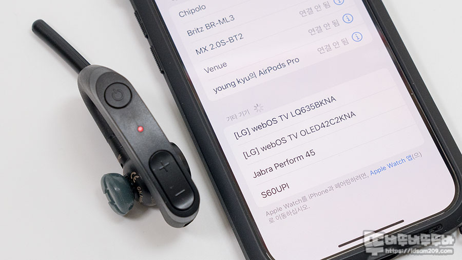 처음 작동 시 전원 버튼을 길게(6초간) 눌러 페어링 모드로 진입 시 스마트 기기에 등장하는 Jabra Perform 45를 선택하여 페어링 후 사용이 가능하며 최초 페어링 이후에는 전원만 켜면 자동으로 연결되는 오토 페어링으로 사용하게 됩니다.