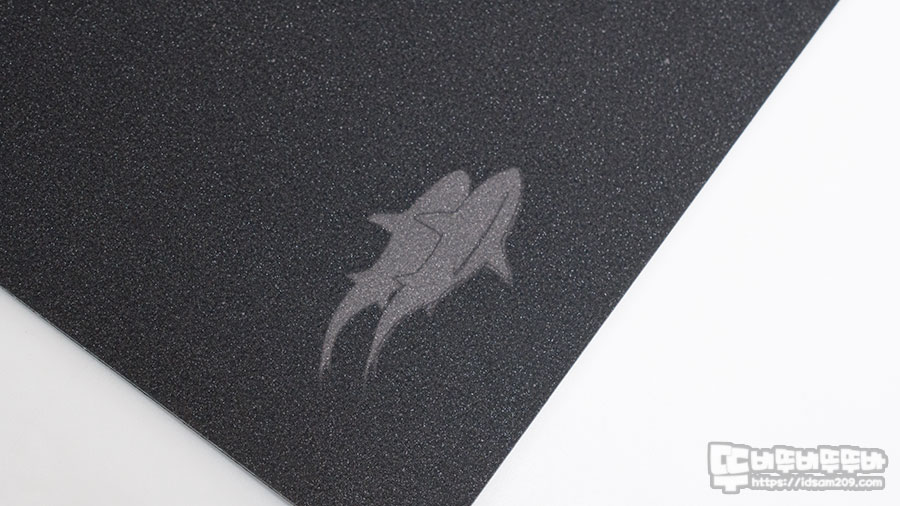 과거에 홍보용으로 제작되어 배포되었던 PVC 필름이 코팅된 패드류는 약간 흐물거렸지만 상어 게이밍 마우스 패드는 게이밍 마우스에 걸맞게 단단한 느낌과 슬라이딩한 느낌을 주었습니다.
