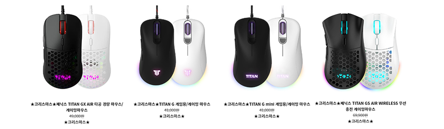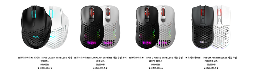 마우스 제품 중에서는 대중적인 디자인의 비대칭 GM Air 무선 마우스 또는 타이탄 G Air 무선 마우스를 추천드리며 그 이외에 제품도 괜찮으니 취향에 맞게 골라보시기 바랍니다.
