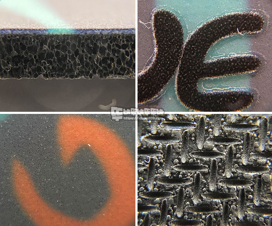 먼저 패드의 측면을 살펴보면 패드 표면 층과 천연 라텍스의 바닥 층의 구조를 확인할 수 있으며 로고는 설명드린 것과 같이 부착한 느낌입니다.
