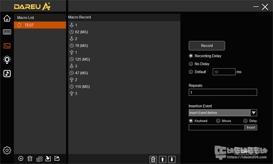 매크로 기능은 여느 매크로 기능과 동일하게 매크로 파일 이름 설정 - Record 버튼 - 키입력 - Stop Record 버튼을 눌러 기록하게 되는데요.