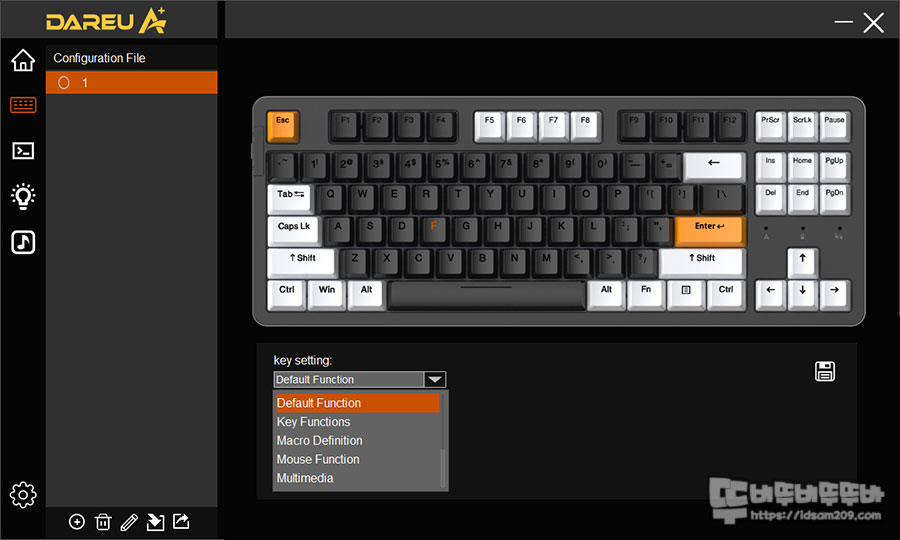 키보드 키 메뉴의 경우 기본 레이어의 키 기능과 키 펑션 메뉴를 통해 고유의 키 내용을 다른 키로 변경이 가능한데 싱글 또는 조합으로 사용이 가능하지만 기본 레이어를 변경하는 형태가 되기에 게임 시 도움이 되는 키로 변경하려는 경우는 펑션키와 모디 기 위주로 선택하시는 게 좋을 거 같습니다.