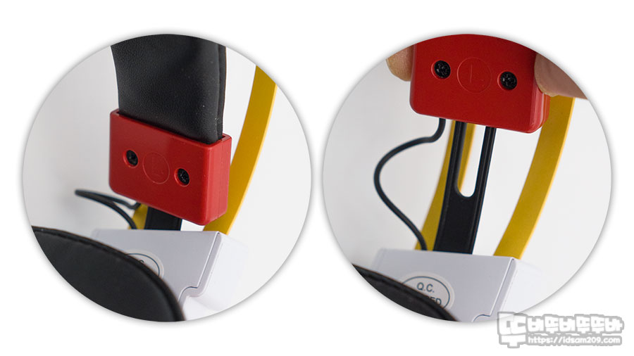 헤어밴드 안쪽에 좌우 구분 각인 모습.
