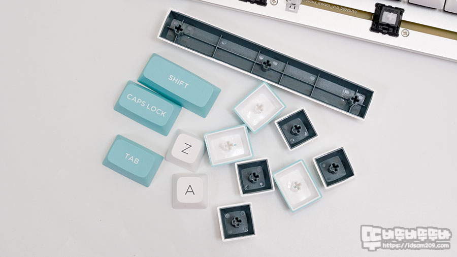 원래 백축은 80g의 압력으로 타이핑 시 상당히 곤혹스러운 스위치라 할 수 있는데 슬라이의 구분감이 갈축보다 센편이라 누르는 느낌이 있어 좋은 편인데요.
