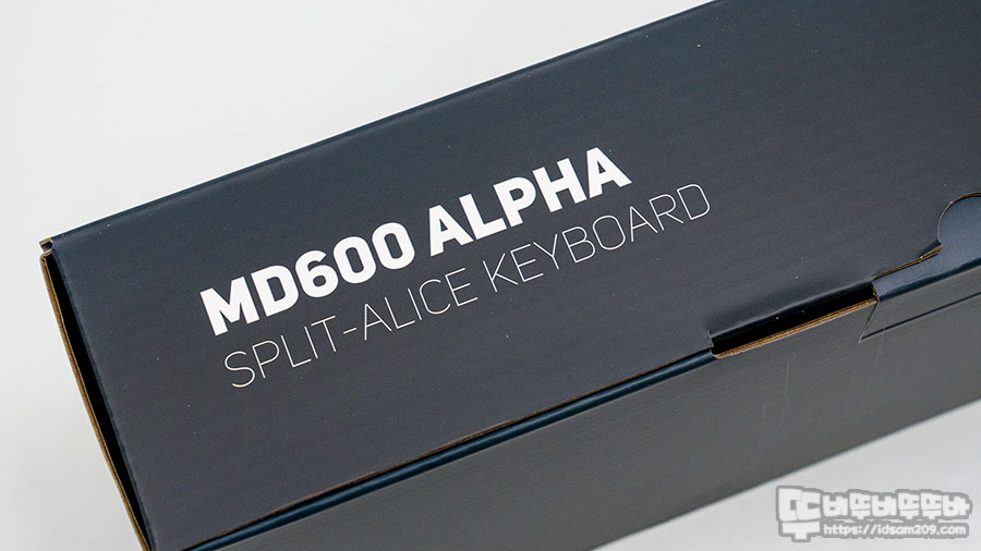 패키지에는 모델명 MD600 Alpha 그리고 Split-Alice 키보드라는 인쇄 내용을 확인할 수 있습니다.
