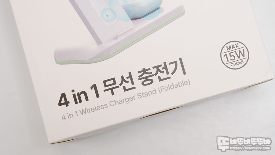 패키지에는 스마트폰, 스마트 워치, 이어폰, 램프 기능을 강조하고 있으며 최대 15W 충전을 지원하는 4가지 기기를 동시에 충전할 수 있는 제품임을 확인할 수 있네요.