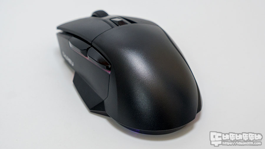 외형적으로는 비대칭 구조를 띄고 있지만 왼쪽 버튼과 오른쪽 버튼의 경사가 그렇게 격하지 않기에 마우스 그립 시 크게 불편함이 없는데 왼쪽 버튼은 연속적인 클릭을 해야 하는 MMORPG 또는 FPS 게임을 장시간 하는 경우 검지 손가락의 불편함이 전혀 느껴지지 않네요.