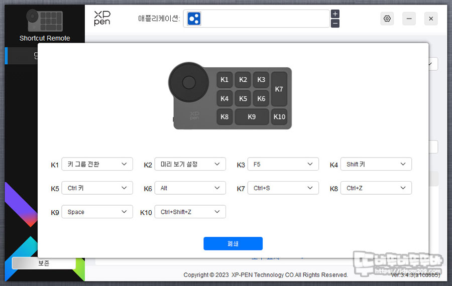 엑스피펜 XP-Pen ACK05 무선 타블렛 키보드 소프트웨어 레이아웃 모습입니다.