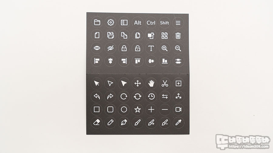 제품 구성품으로 단축키 스티커가 제공되지만 4개의 프로파일을 사용하면 버튼 한 개의 4개의 기능 할당이 가능하기에 프로파일 한 개만 사용한다면 스티커 사용이 좋고 두 개 이상의 프로파일을 사용한다면 스티커 부착보다는 미리 보기 기능을 활용하시는 게 좋습니다.