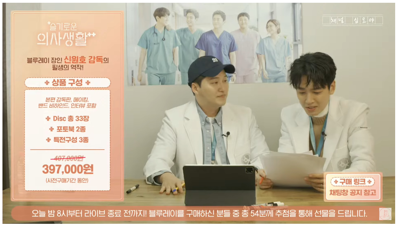 바야흐로 22년 12월 30일 슬기로운 의사생활 시즌 1, 2 블루레이 판매 소식을 접하게 되고 출장십오야 유튜브 채널에서 블루레이 판촉 라이브를 보고 솔깃하여 주문을 했었습니다.