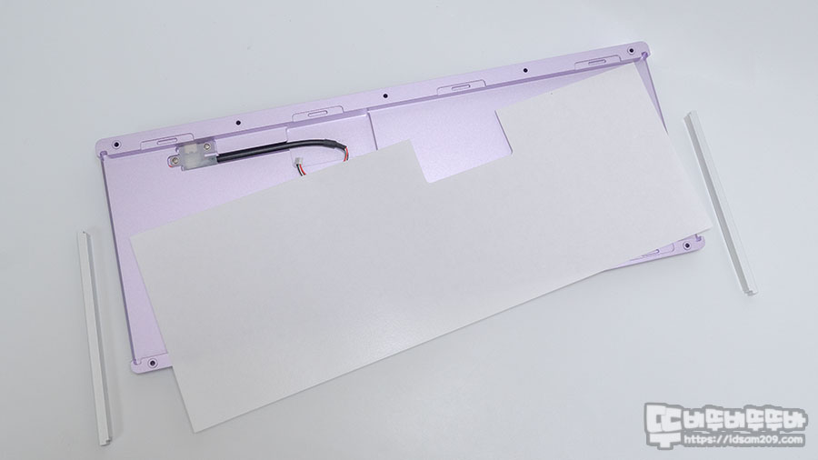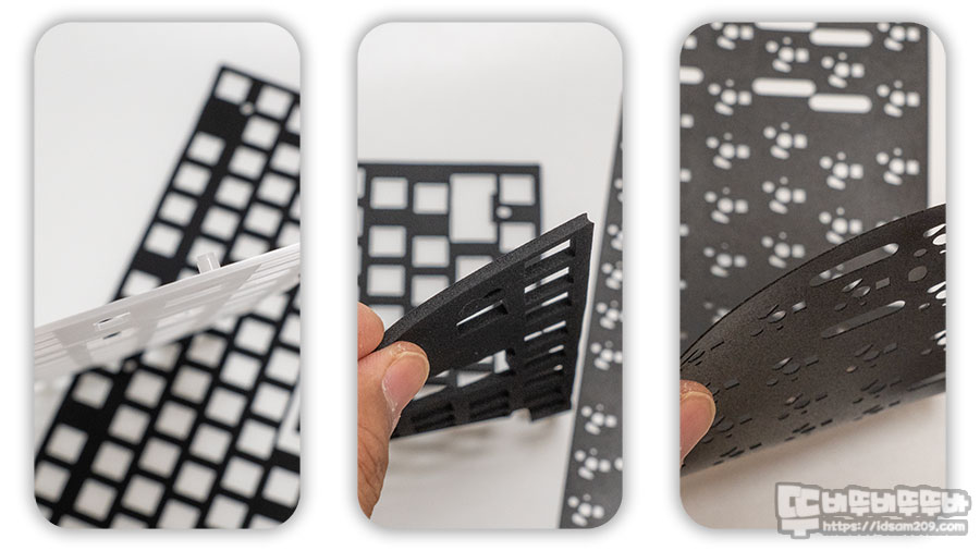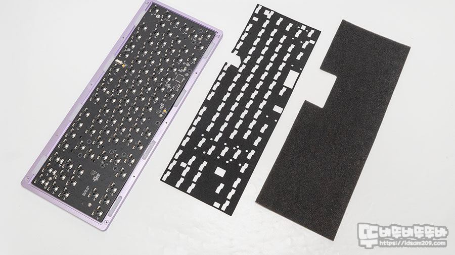 폴리카보네이트 보강판과 기판이 결합된 뒷면에 흡음제와 이번에 새롭게 추가된 케이스 폼을 살펴보겠습니다.