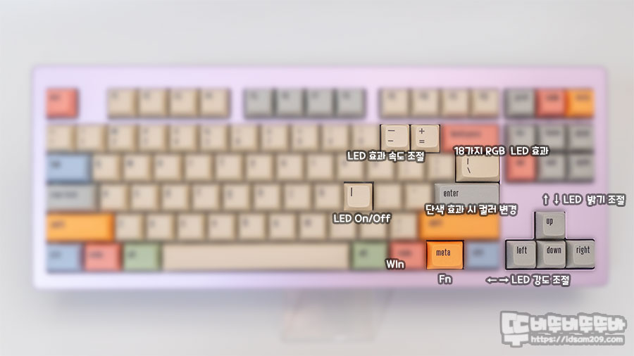 키캡 당시 풀 옵션으로 구입한 게 아니라서 키캡 각인에 상관없이 대충 맞는 키캡으로 꼽아 표준 각인과 다른 점 양해 바랍니다.