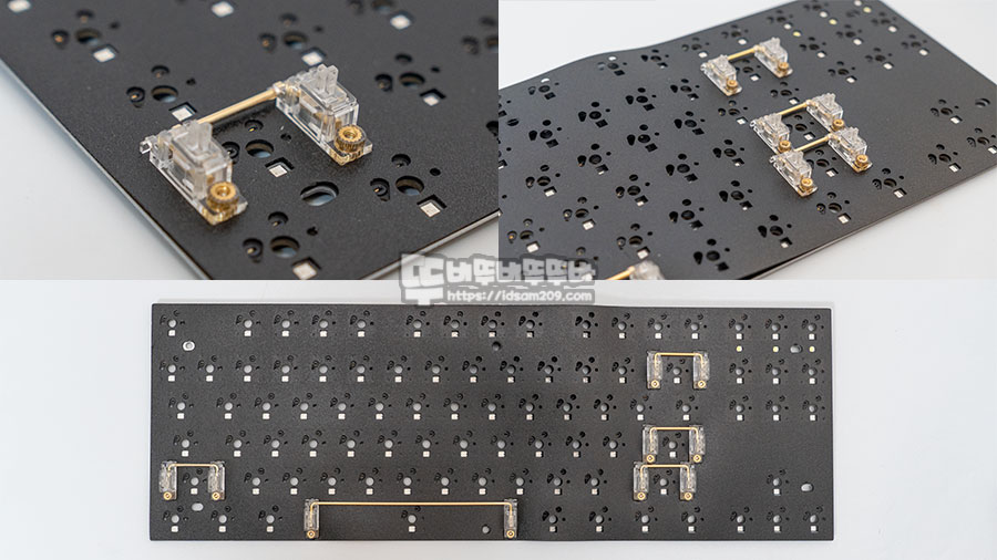 제품에 기본으로 제공되는 기판용 스테빌라이저 대신 보강판용 스테빌라이저를 사용하면 베어본을 분해하지 않고 바로 조립할 수 있습니다.