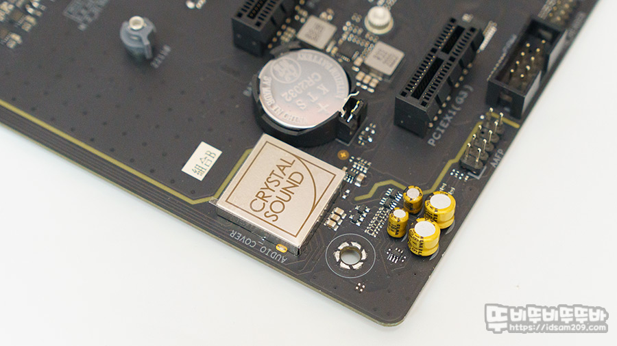 디팝 회로와 24Bit/192kHz 성능의 Realtek 7.1 채널 오디오 칩이 사용된 사운드 부에는 오디오 커버를 사용하여 고급스러운 느낌을 주며 프리미엄 오디오 캐패시터 사용과 좌우가 분리된 전용 오디오 PCB 레이어에 사용으로 노이즈 간섭을 최소화해주고 있습니다.