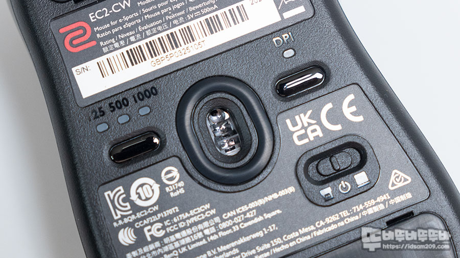 EC2 시리즈의 특징이라면 하우징의 텐션으로 사용되는 버튼 디자인으로 최근에는 대부분의 마우스들이 절개형 버튼 디자인을 적용하고 있어 조금 올드한 느낌이 있지만 오랫동안 사용해 오면서 적응했던 유선 마우스 디자인을 무선에서도 사용할 수 있어 벤큐 조위 마우스를 좋아하시는 분들이라면 만족하실 거 같네요.