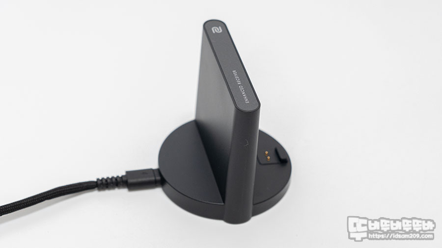 독립형 리시버는 무선 마우스 앞쪽에 위치한 안테나와 송수신 간섭을 줄이는 역할과 마우스를 사용하지 않을 때 충전이 가능하여 책상 위에 올려놓고 사용하시면 정말 편합니다.