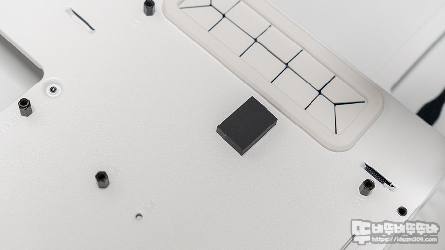 케이스 하단부 샤시 전면에 부착이 가능한 SSD는 자재로 제공되는 실리콘 댐퍼와 댐퍼 고정용 나사를 이용하여 결합 후 샤시면에 구멍에 꾸욱 눌러 결합하면 되지만 탈거하는 부분이 조금 번거로울 수 있으니 특별한 경우가 아니라면 샤시 뒷면에 SSD/HDD 가이드를 활용하시는 걸 추천드립니다.