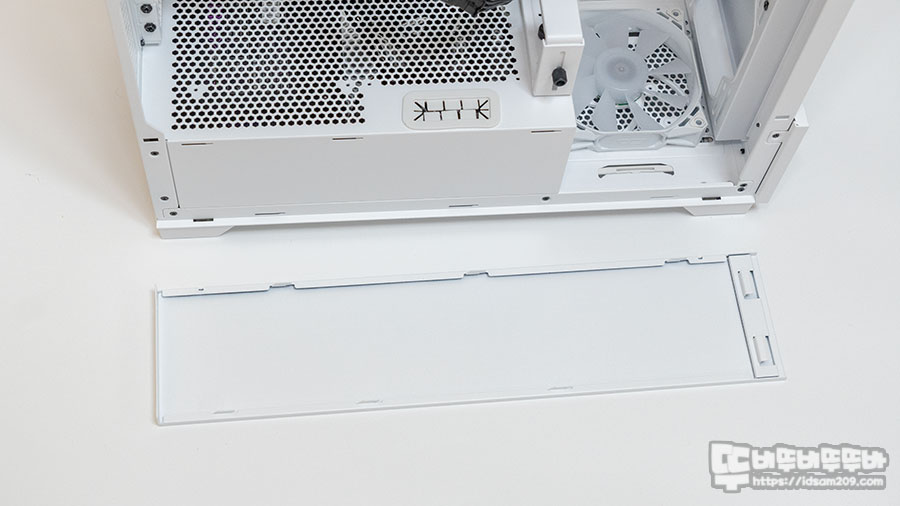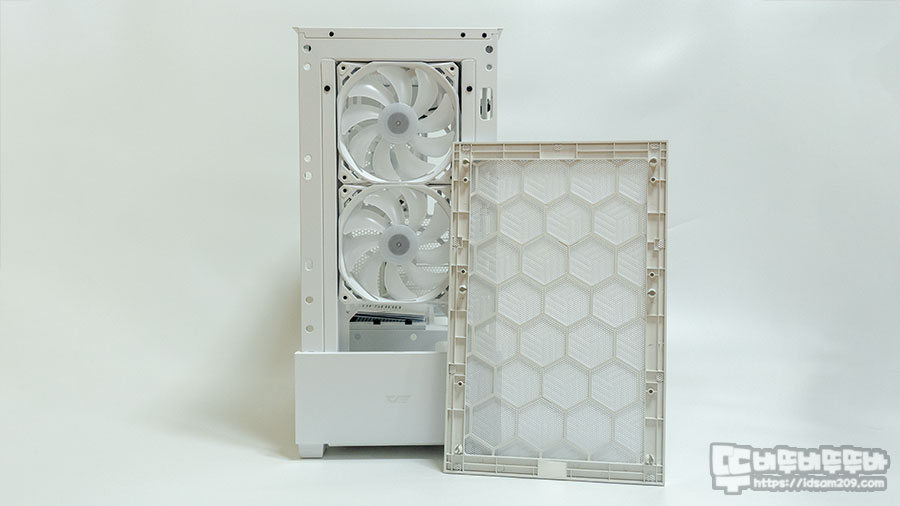 케이스 바닥면에는 플라스틱 가이드를 이용한 슬라이딩 방식의 먼지 필터를 제공하여 먼지 유입을 최소화해 주며 간단하게 탈부착이 가능하여 유지 보수 또한 편안한 게 정말 좋습니다.