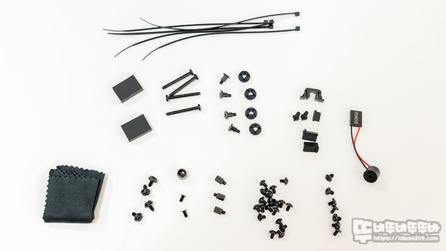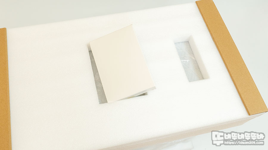 패키지를 개봉하면 케이스를 보호하는 발포폼과 모서리 부분의 하드타입의 골판지가 더해져 케이스를 튼튼하게 보호해 주며 발포폼 측면에 조립에 필요한 나사류가 담긴 박스가 따로 담겨있으니 포장재를 버리기 전에 꼭 챙기시기 바랍니다.