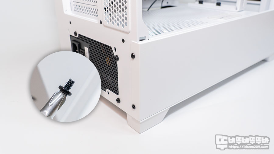 샤시 뒤쪽을 살펴보면 파워서플라이가 장착되는 하단부는 290mm 길이로 표준 ATX 파워 서플라이 및 고성능 파워서플라이 장착 후 여유 공간이 많아 파워서플라이 케이블을 정리하여 수납하는데 불편함이 없고요.