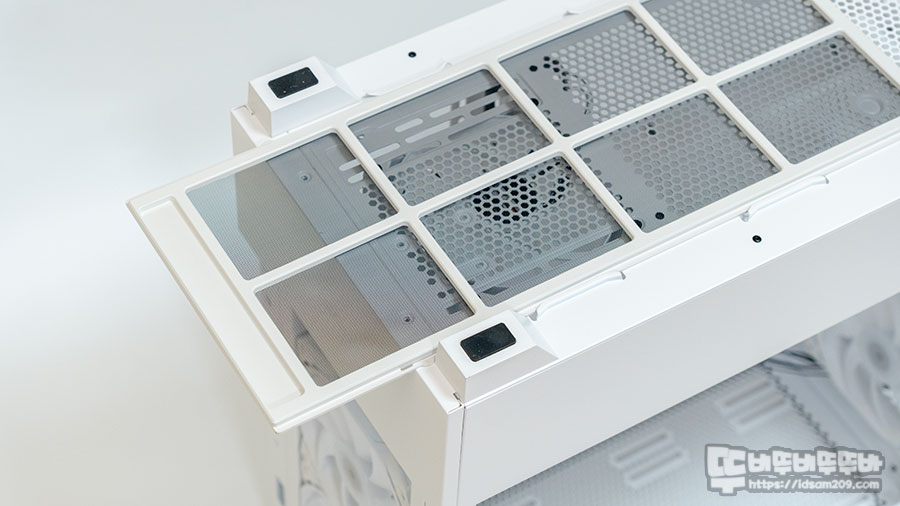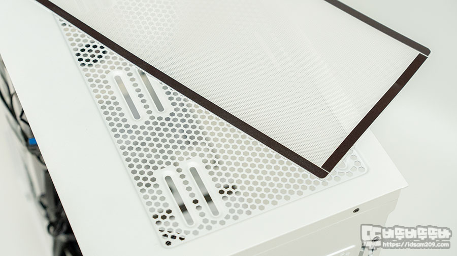 전면 패널 내부에는 먼지 필터가 기본으로 부착되어 있으며 케이스 상단과 사이드 패널 내부에 고무자석으로 고정되는 먼지 필터가 부착되어 있어 탈부착이 가능한 만큼 유지 보수를 편하게 할 수 있고요.