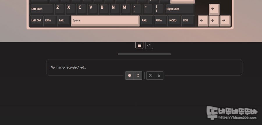 특히 매크로의 경우 가장 왼쪽의 매크로 메뉴를 선택하여 저장된 키를 선택하는 방식이니 참고하세요.