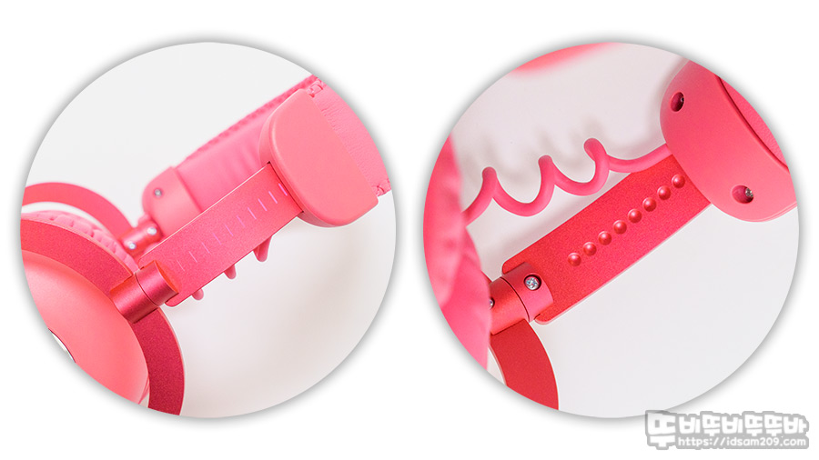 헤어밴드는 길이 조절을 표시해 주는 눈금과 안쪽에는 균일한 타공으로 "다다닥" 구분되는 소리로 균등한 길이 조절이 가능하여 좌우 균형을 맞추는데 도움이 되며 헤어밴드와 이어컵 하우징을 연결하는 알루미늄 소재의 C 포크 사이에는 1세대 모델에는 없었던 90도 회전이 가능한 구조가 추가 편안한 착용을 지원합니다.