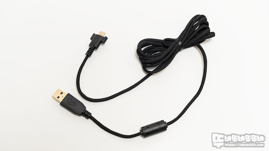마우스 충전과 유선 사용을 지원하는 USB-C to A 케이블의 경우 마우스 또는 무선 리시버에 연결되는 부분은 단자 파손을 최소화하기 위해 좌우에 고정이 가능한 몰딩이 추가되어 케이블 연결 시 움직임 없이 딱 고정해 주는 역할을 합니다.