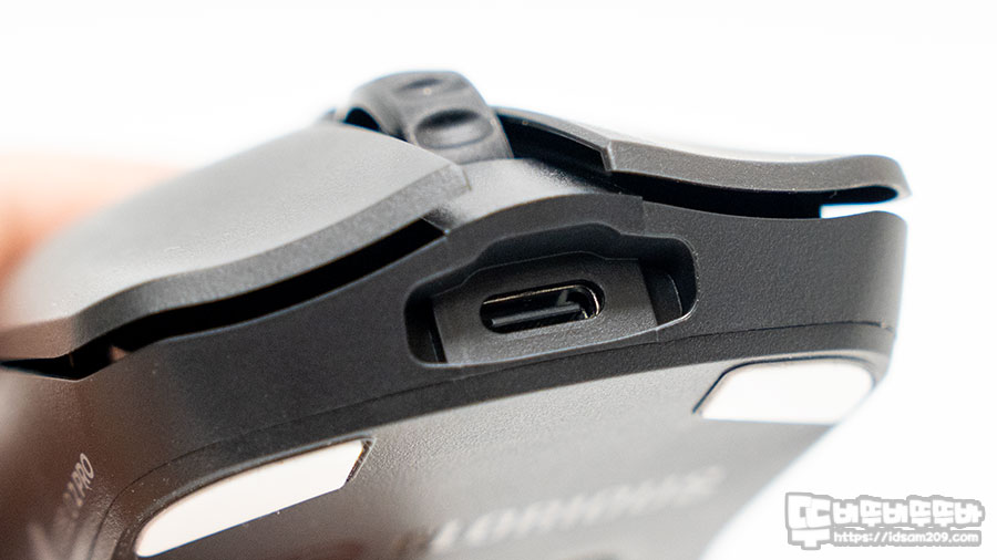 USB-C 몰딩 부분의 모습과 마우스의 USB-C 단자 모습.