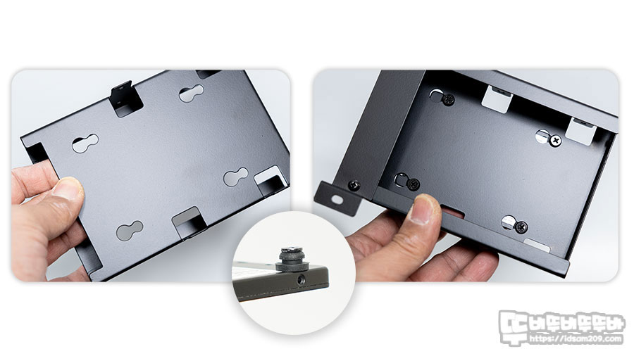 테스트 시스템으로 사용하는 용도라 HDD는 장착하지 않고 SSD를 장착하였는데 SSD 장착 시 사용되는 고무 와샤의 경우 윗부분이 좁고 아부분이 넓게 결해야 가이드에 슬라이딩 방식으로 고정이 가능합니다.